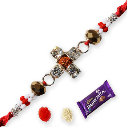 • Send this Beautifully Diamond studded Rakhi to your brother with one bar of Dairy Milk chocolate.