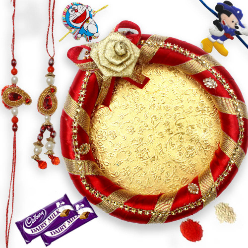 - 2 Elegant Kids Rakhis specially crafted for your brothers and 1 Bhaiya Bhabhi Rakhi set for your Bhaiya and Bhabhi.
