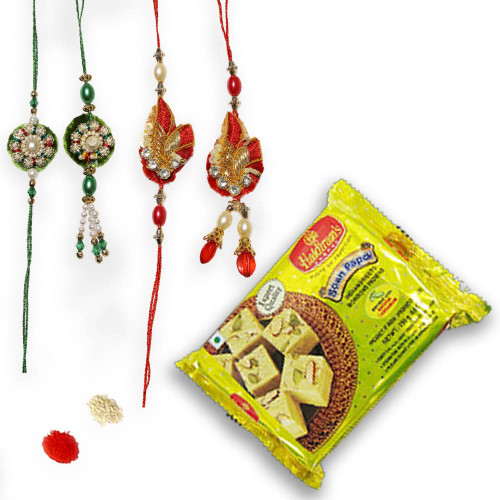 - 2 Elegant Bhaiya Bhabhi Rakhi set specially crafted for your bhaiya and bhabhi