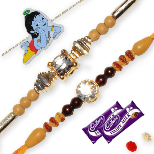- 3 Elegant Rakhis specially crafted for your brothers of which one is shree bal Krishna Rakhi for your lovely little brother and
