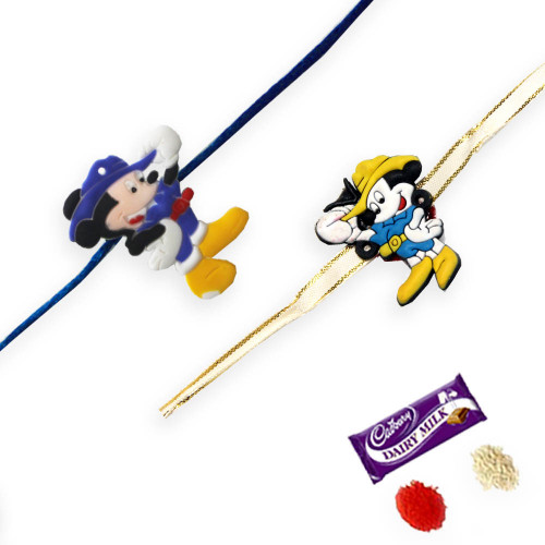 - 2 Elegant Kids Rakhis specially crafted for your brothers with delicious Dairy Milk Chocolate.