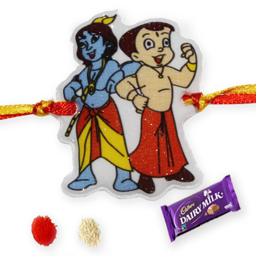 A very special Bal Krishna with Chota Bheem rakhi for your little brother. This Rakhi comes with 1 bar of dairy milk chocolate